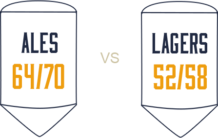 So then you get to decide between the ales and the lagers. There are really only two kinds of beer—ale and lager—but then many different styles within those two categories. So what’s the difference? The yeast stain and the temperature of which the ferment. Ale yeast typically ferment between 64 and 70 degrees while lager yeast ferment between 52 and 58 degrees. With ales, the warmer fermentation generally produces a complex, fruity flavor. And the colder fermentation process produces the crisp, clean flavors of the lager. That’s a very simple explanation, but you get the picture.